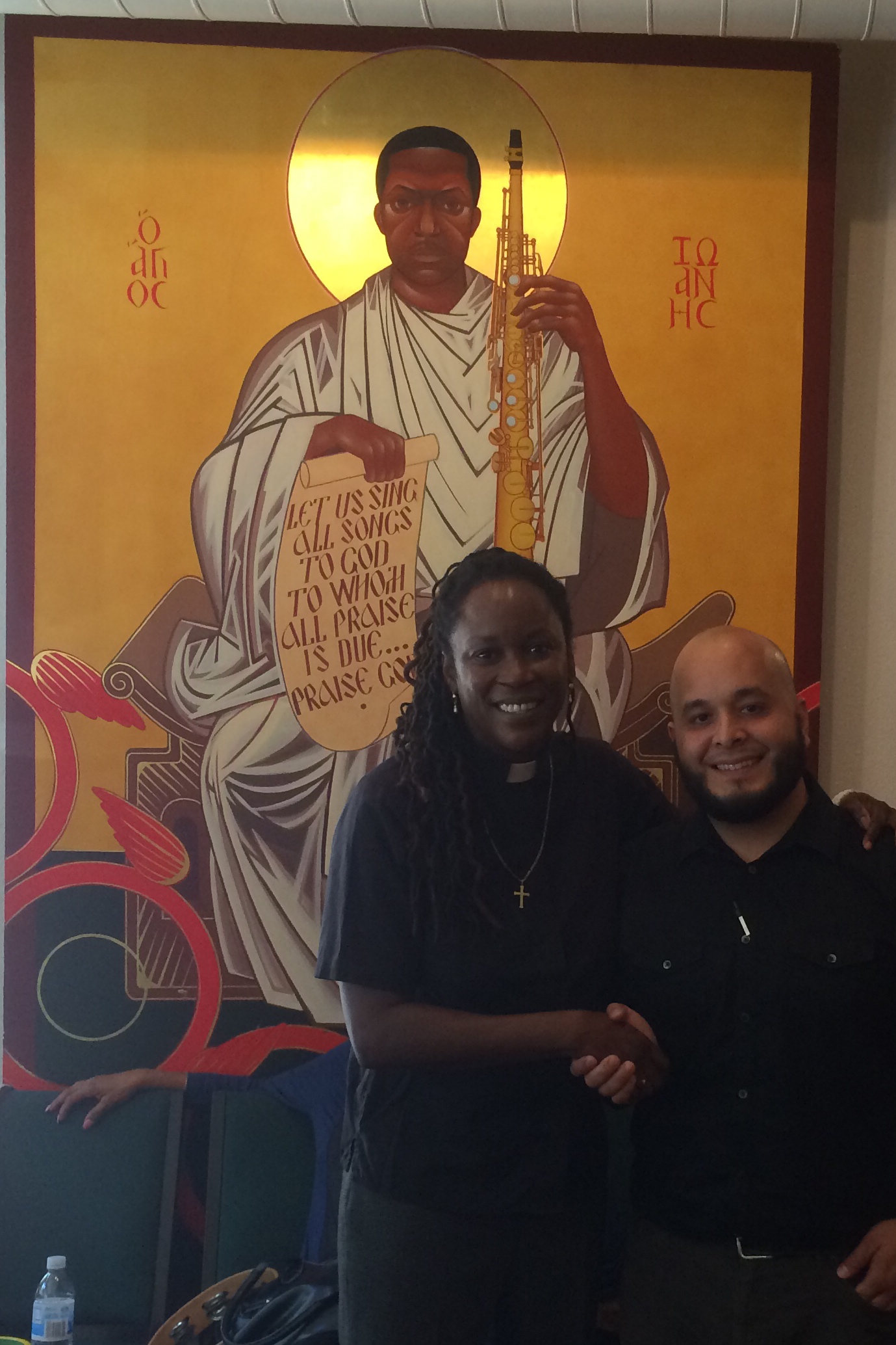 With Pastor Stephens and Saint John Coltrane in background.