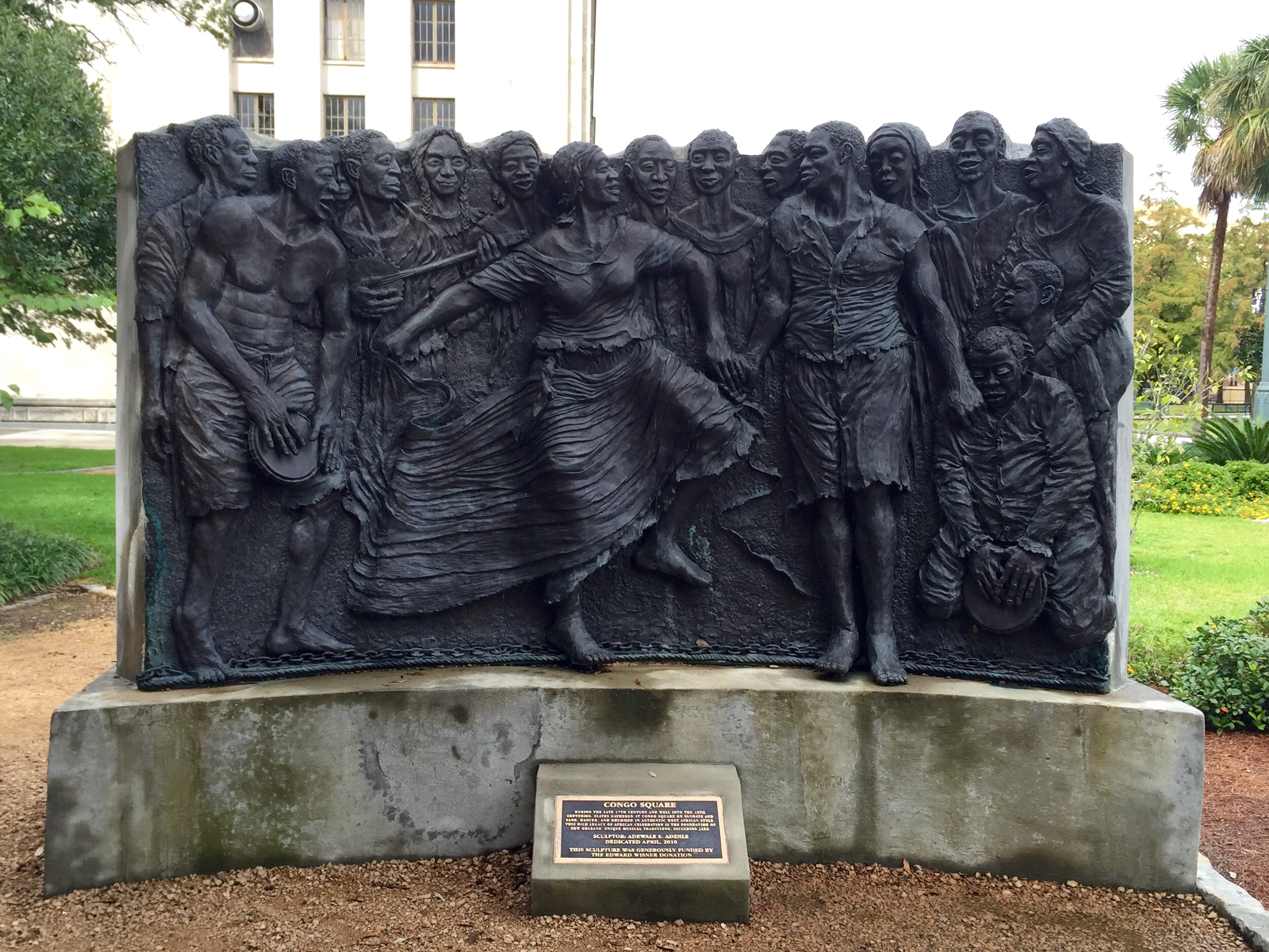 Between the 17th and 18th centuries, slaves would gather here on Sundays to sing, dance and drum in West African tradition. The sculpture seen here commemorates this history.