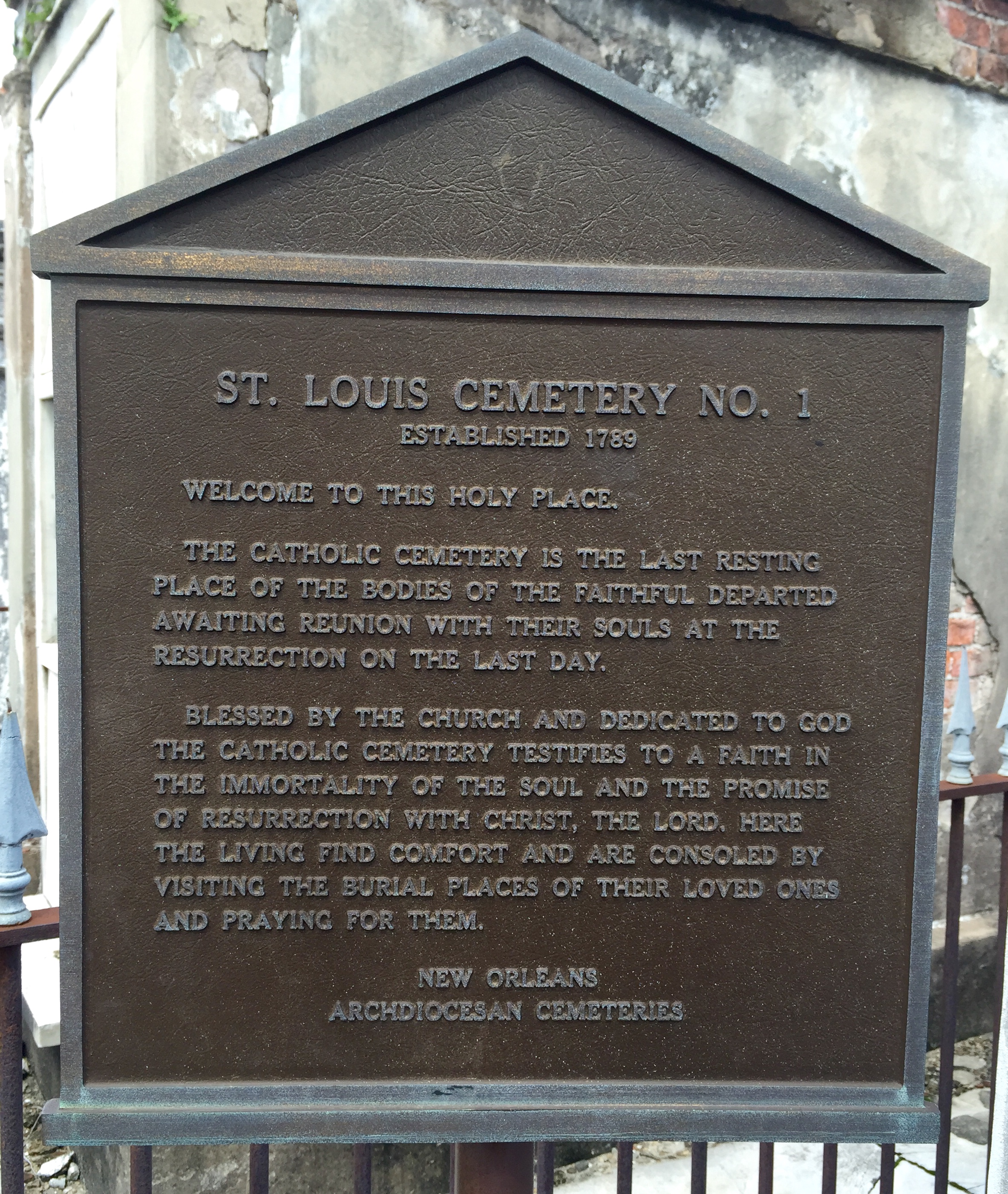 Opened in 1789, this is the oldest of the Saint Louis Cemeteries and among the notables buried here is Marie Laveau. However, there is controversy and confusion surrounding this fact. The tomb believed to house her remains bears a plaque stating that this is her reputed burial place. The tomb is a main attraction for tourists and devotees, and as such has suffered a great deal of vandalism. It is currently being restored.