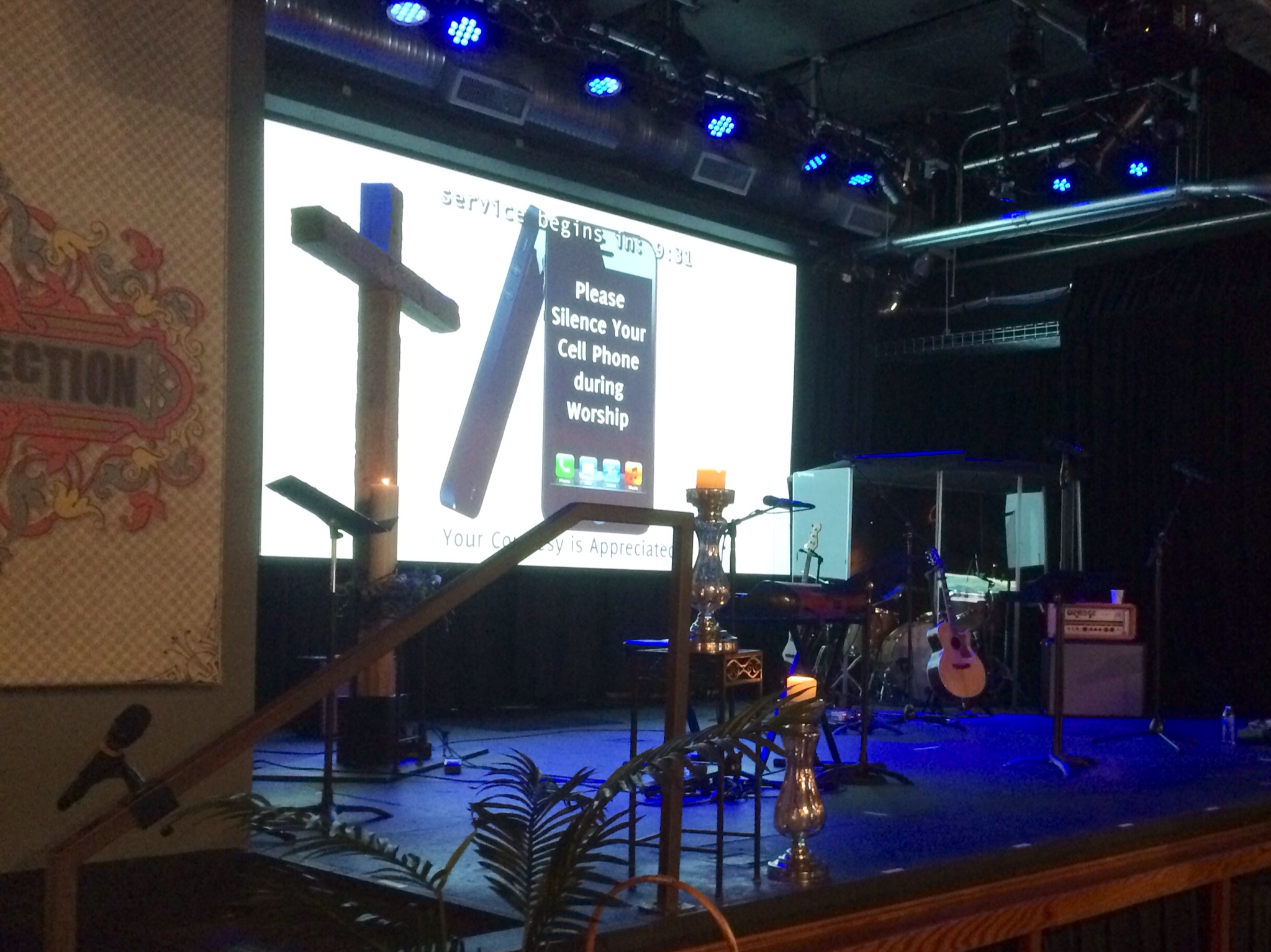 My “worship experience,” as the church refers to its services, was a deep contrast with all of the historic churches and cathedrals I’ve visited lately. You won’t find sacred art in this church. You won’t see an organ or a choir loft. In fact, there isn’t even a pulpit. Instead of pews, there are comfy chairs. Instead of stained-glass windows, there are two giant projection screens flanking the stage. In place of an altar, there are bright, colorful lights and laser visualizations. As you walk in, you can’t help but notice the TV cameras hoisted upon large cranes. An outsider like myself can be easily distracted, even put off, by all of the cutting edge-technology and the exacting level of audio-visual production. But as the service begins and as I look around, the congregants don’t even seem to notice it. They are absorbed in worship, focused on what they have come here to do. To me, this resembles a sound stage for American Idol much more than it does a church. Only the music is better. A lot better.